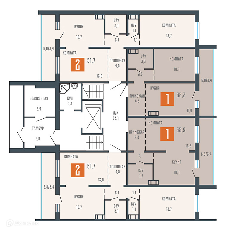 Площади квартир