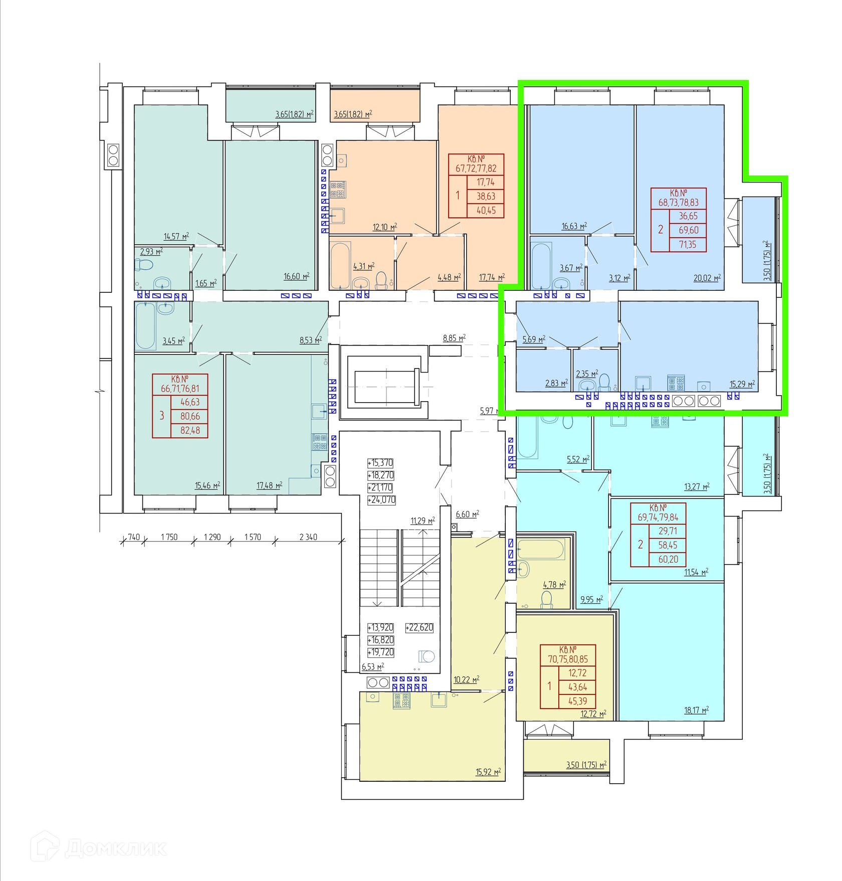 Площади квартир
