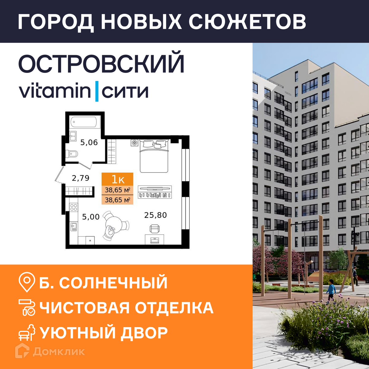 В продаже 1-комнатная квартира в новом жилом комплексе "ЖК Островский vitamin-сити" 🏢. Квартира расположена на 1-м этаже 17-этажного дома. Прекрасный выбор для инвестиций.
