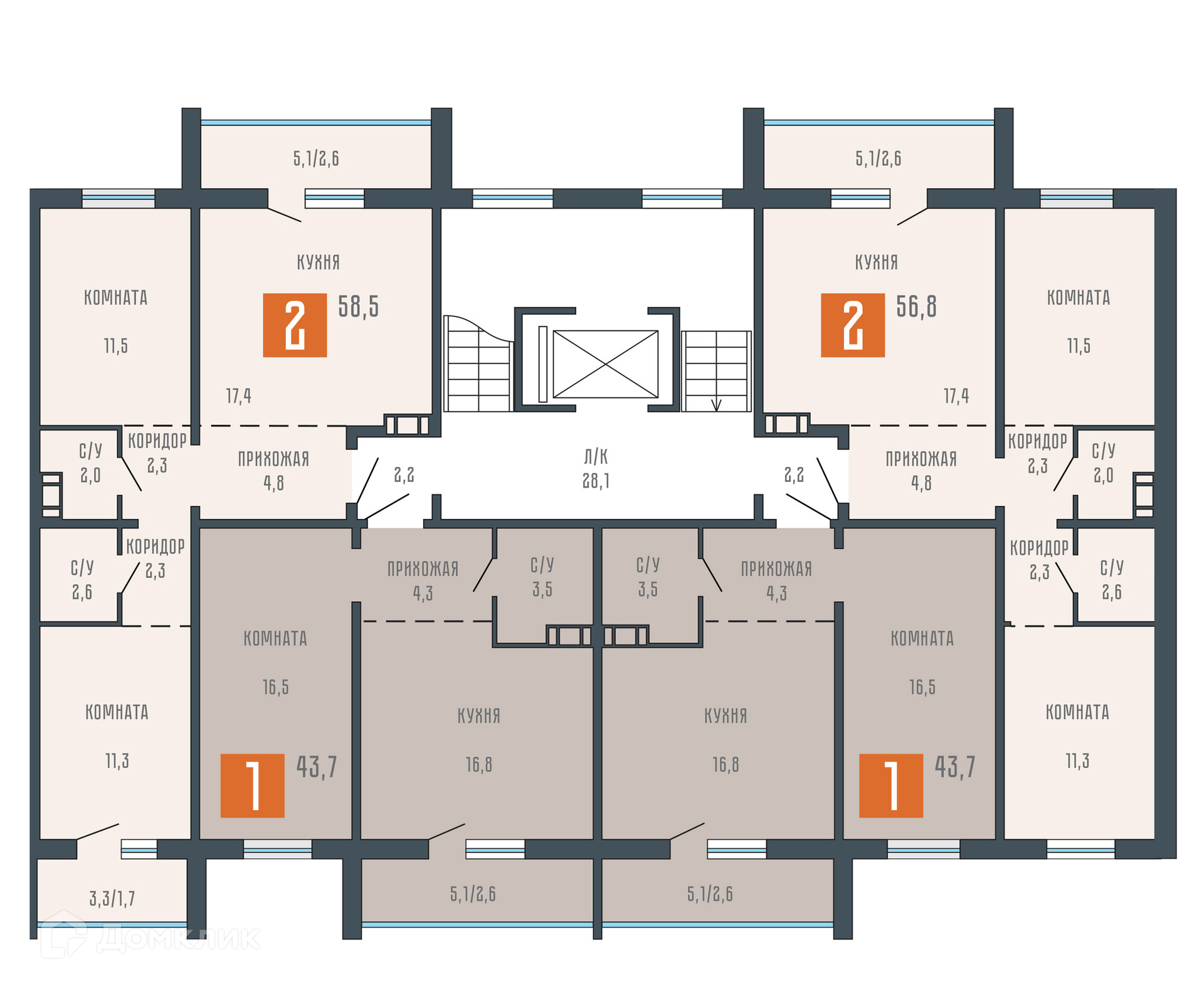 Площади квартир