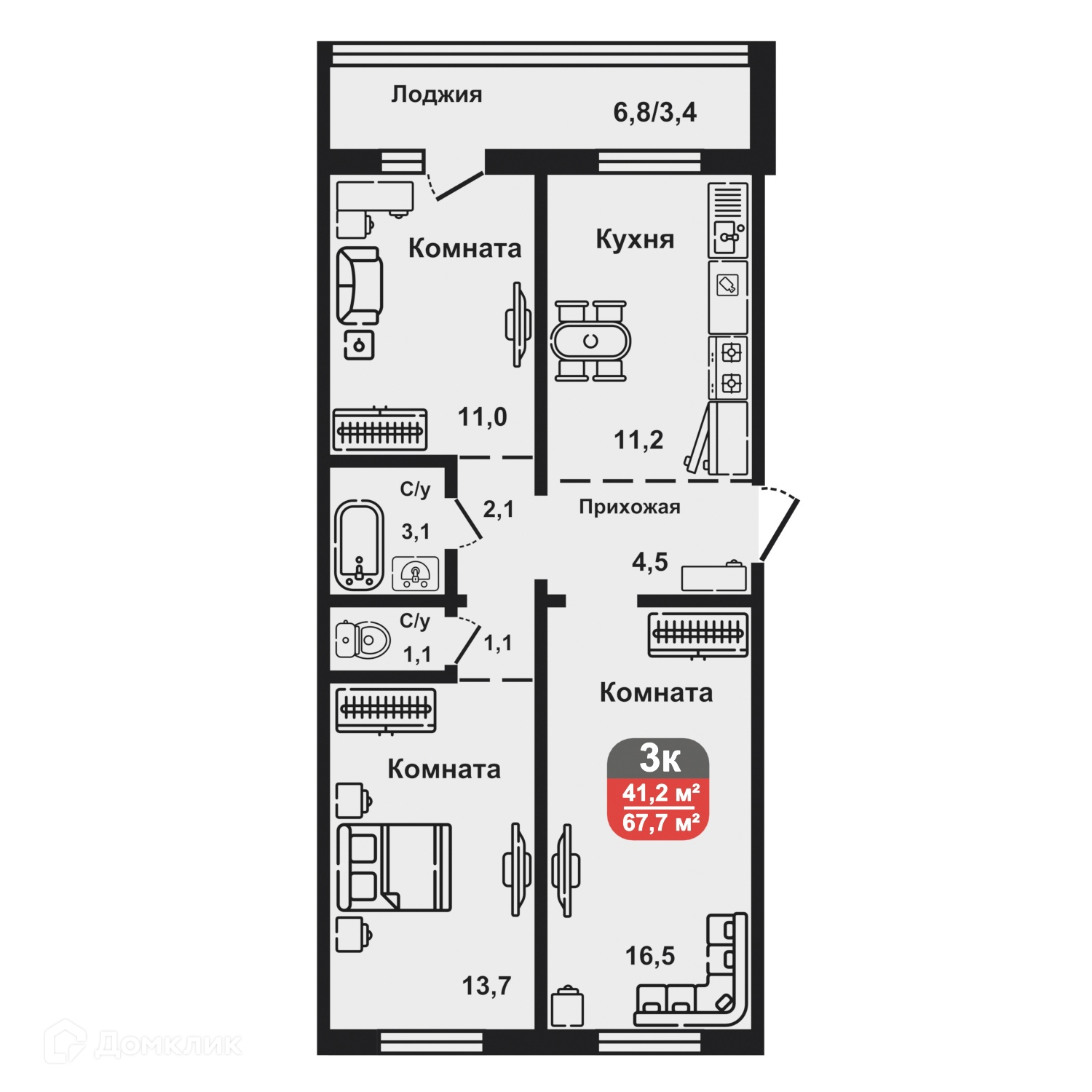 Площади квартир
