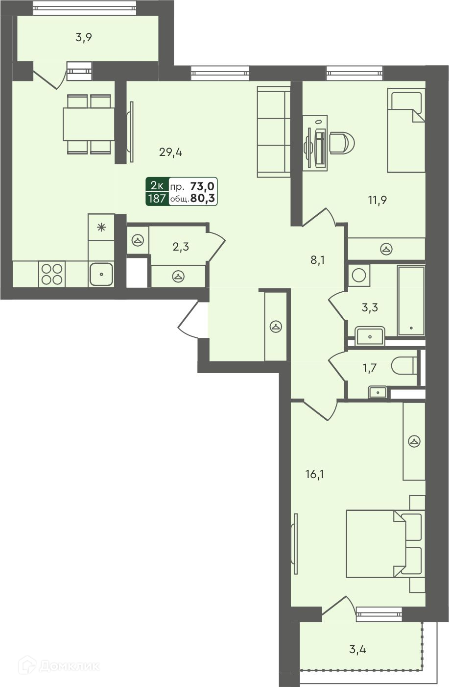 Площади квартир