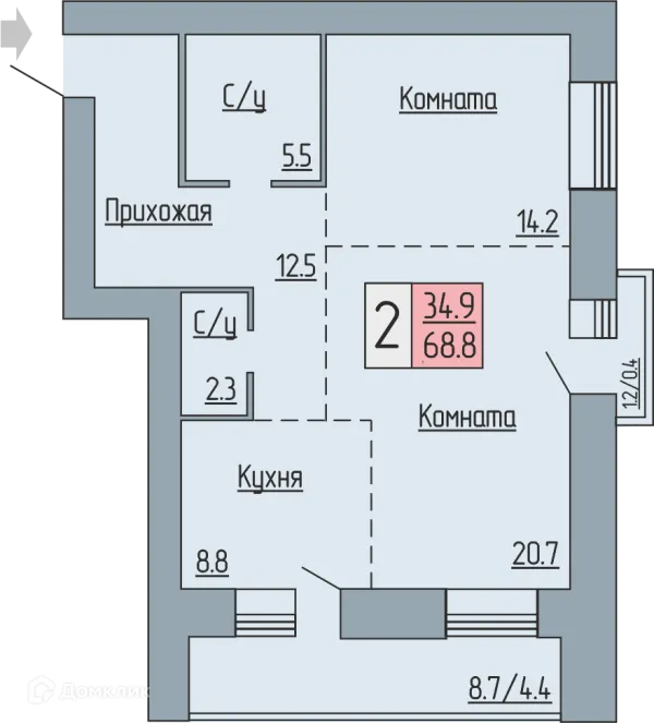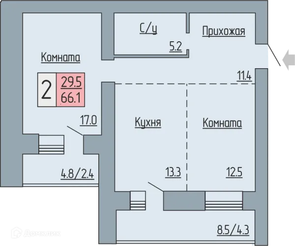 2 комн. квартира в Кургане в ипотеку от 54 251 руб/месяц