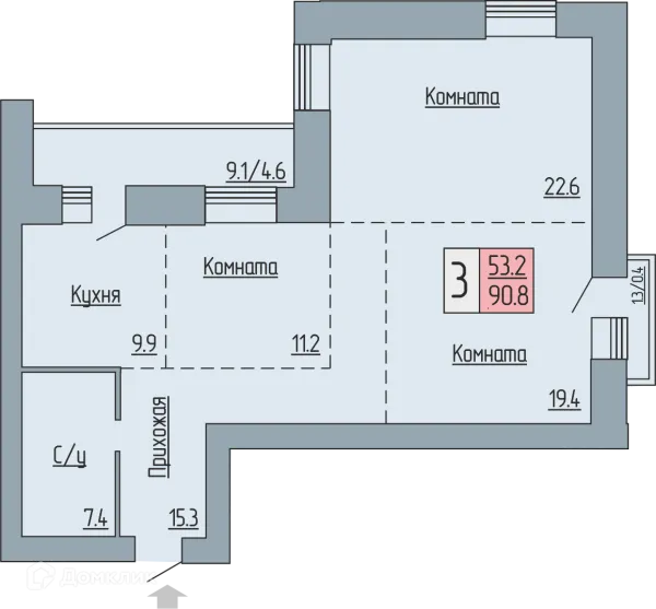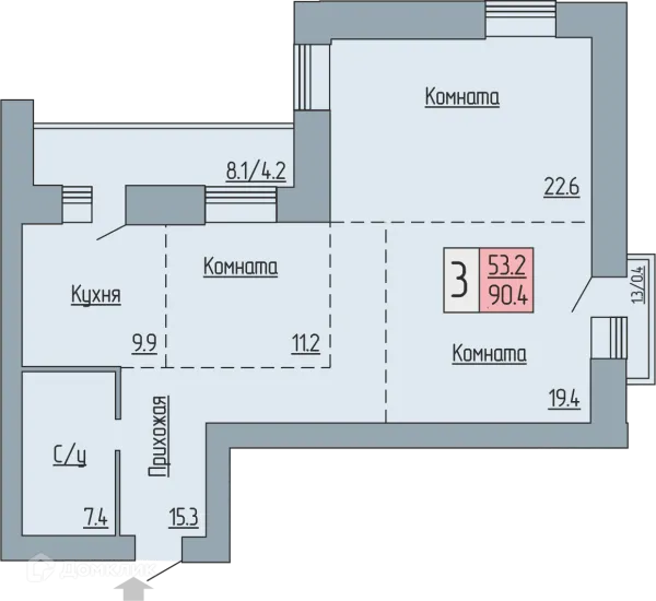 3 комн. квартира в Кургане в ипотеку от 63 423 руб/месяц