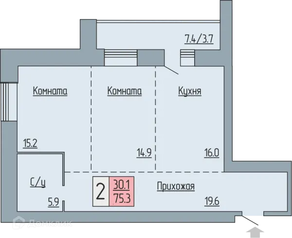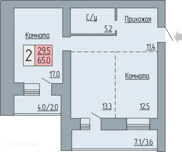 2 комн. квартира в Кургане в ипотеку от 73 623 руб/месяц