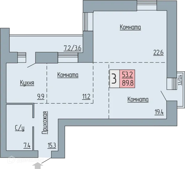 3 комн. квартира в Кургане в ипотеку от 53 796 руб/месяц