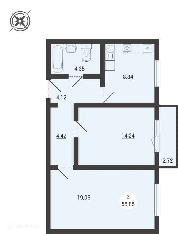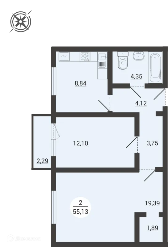 2 комн. квартира в Кургане в ипотеку от 32 737 руб/месяц