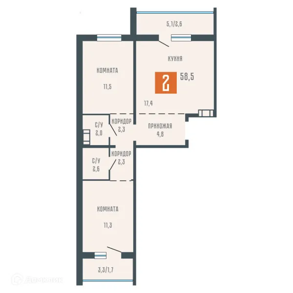 2 комн. квартира в Кургане в ипотеку от 51 207 руб/месяц