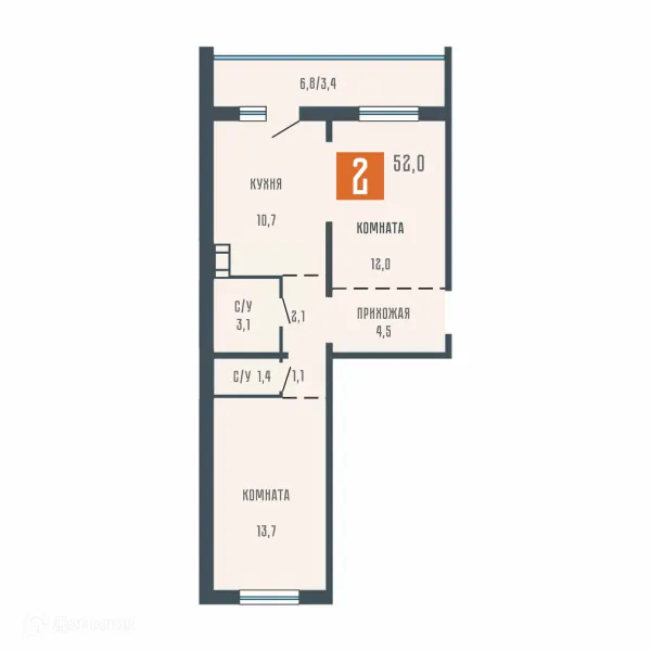 2 комн. квартира в Кургане в ипотеку от 53 490 руб/месяц