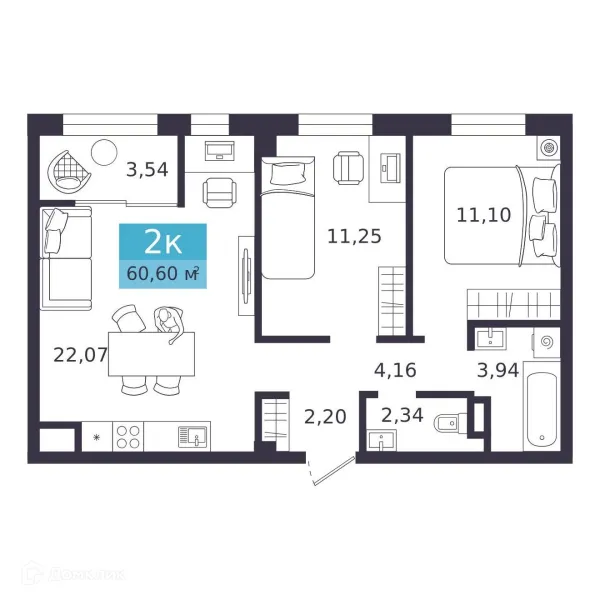 2 комн. квартира в Кургане в ипотеку от 34 657 руб/месяц