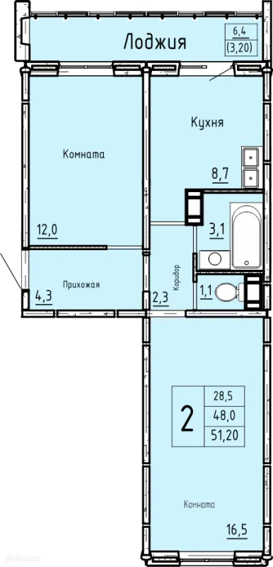 2 комн. квартира в Кургане в ипотеку от 66 321 руб/месяц