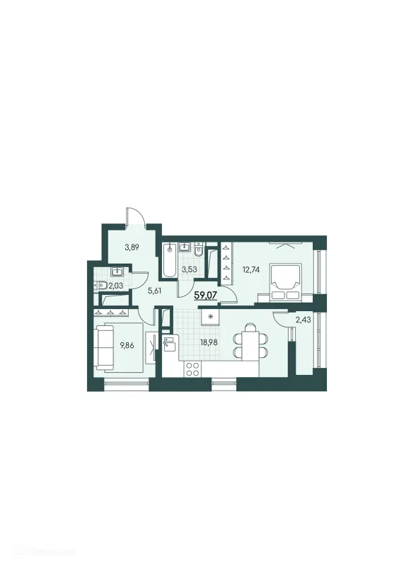 2 комн. квартира в Кургане в ипотеку от 54 079 руб/месяц