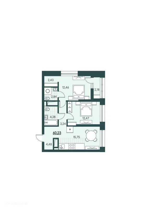 2 комн. квартира в Кургане в ипотеку от 51 343 руб/месяц