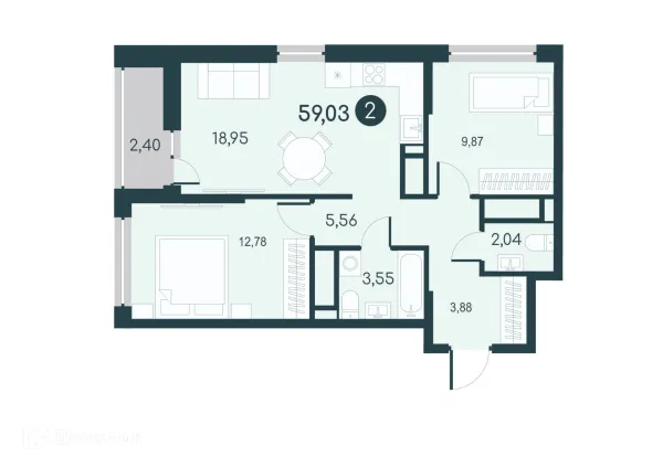 2 комн. квартира в Кургане в ипотеку от 60 776 руб/месяц