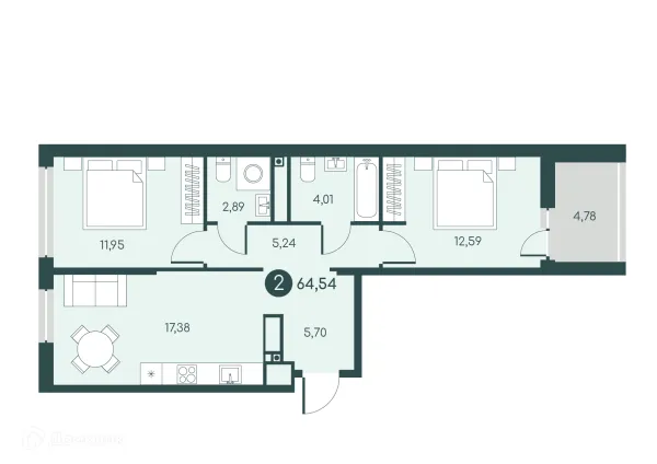 2 комн. квартира в Кургане в ипотеку от 51 703 руб/месяц