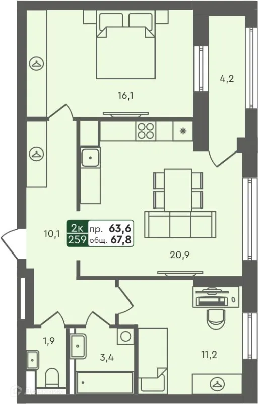 2 комн. квартира в Кургане в ипотеку от 57 464 руб/месяц