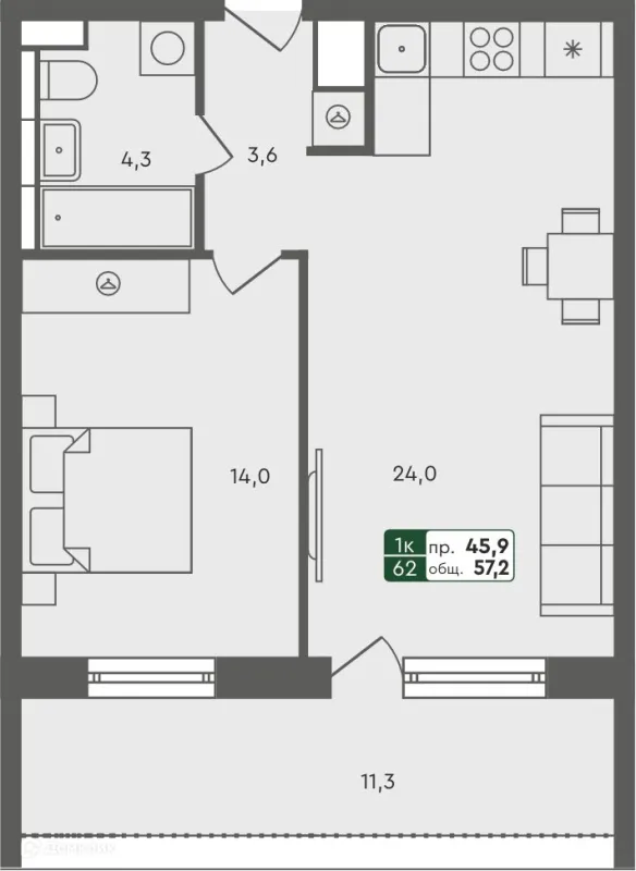 1 комн. квартира в Кургане в ипотеку от 34 996 руб/месяц