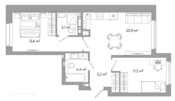 2 комн. квартира в Астрахане в ипотеку от 55 879 руб/месяц