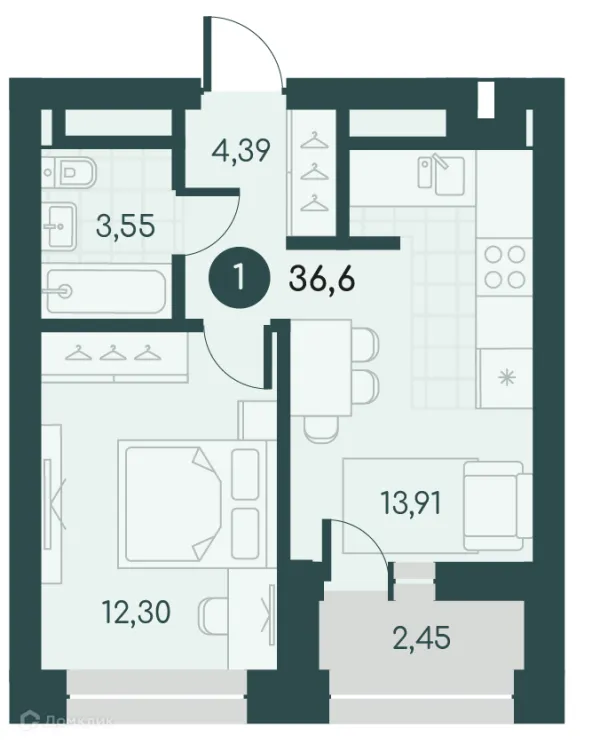 1 комн. квартира в Кургане в ипотеку от 32 824 руб/месяц