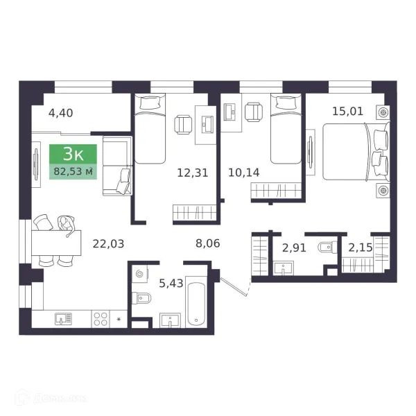 3 комн. квартира в Кургане в ипотеку от 83 461 руб/месяц