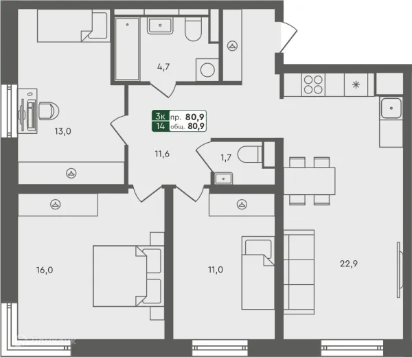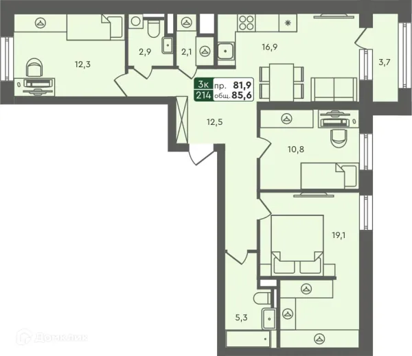 3 комн. квартира в Кургане в ипотеку от 84 373 руб/месяц