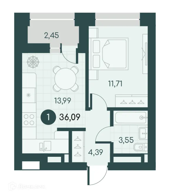 1 комн. квартира в Кургане в ипотеку от 34 060 руб/месяц