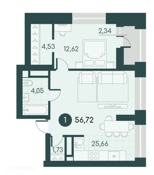 1 комн. квартира в Кургане в ипотеку от 34 060 руб/месяц