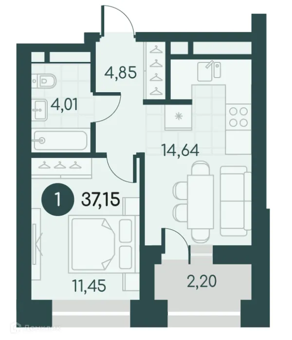 1 комн. квартира в Кургане в ипотеку от 31 828 руб/месяц
