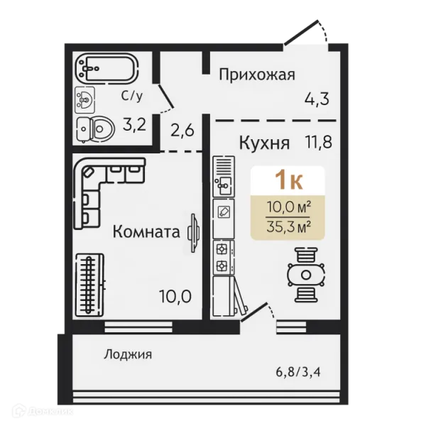 1 комн. квартира в Кургане в ипотеку от 32 569 руб/месяц