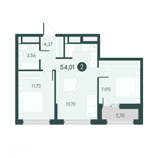 2 комн. квартира в Кургане в ипотеку от 51 703 руб/месяц