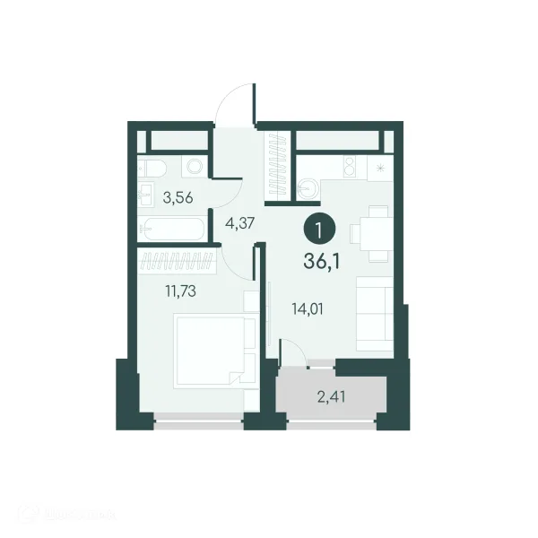 1 комн. квартира в Кургане в ипотеку от 37 661 руб/месяц