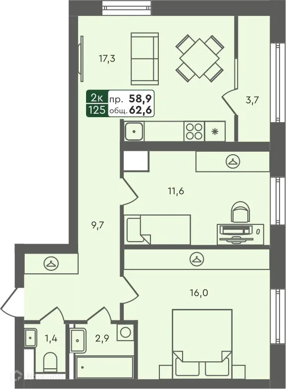 2 комн. квартира в Кургане в ипотеку от 57 464 руб/месяц