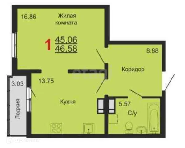 1 комн. квартира в Кургане в ипотеку от 30 903 руб/месяц