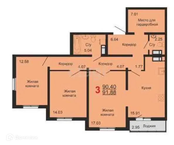 3 комн. квартира в Кургане в ипотеку от 55 130 руб/месяц