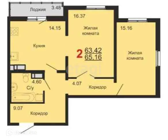 2 комн. квартира в Кургане в ипотеку от 42 485 руб/месяц