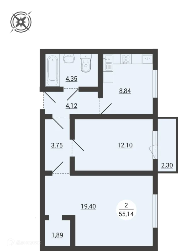2 комн. квартира в Кургане в ипотеку от 37 890 руб/месяц